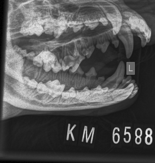 RTG ukázal, že zoubek založený je. Veterinář říkal, že záleží už jen na nás, jak budeme na zoubek tlačit, aby byl stejně viditelný jako ten pravý. Děkujeme MVDr. Veselému.